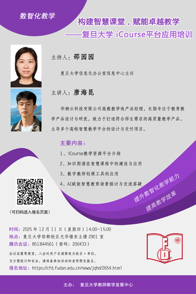 构建智慧课堂,赋能卓越教学——复旦大学 iCourse平台应用培训