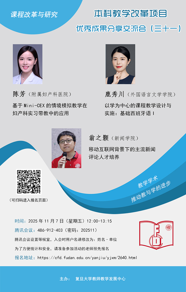本科教学改革项目优秀成果分享交流会(三十一)~(三十二) - 复旦大学教师教学发展中心
